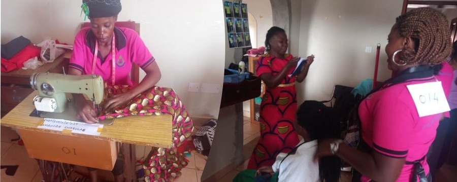 Hair Dressing Instructor preparing beginners for shampoo and conditioning practical