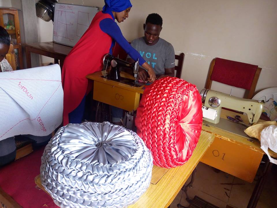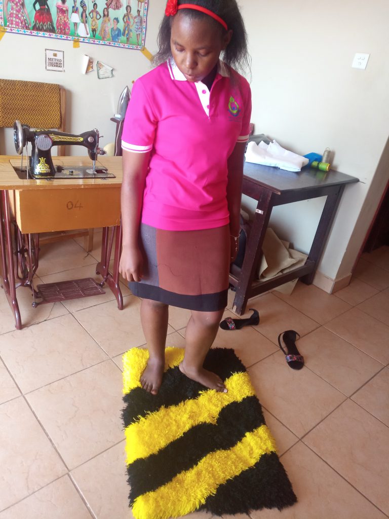 In the fashion designing class, Fridays are days for hand craft work. This involves making items in a traditional way using hands rather than using machines. Students make items like cushions, door mats, baby bags, carpets, backpacks, hand bags, wallets, jewelry and so much more.