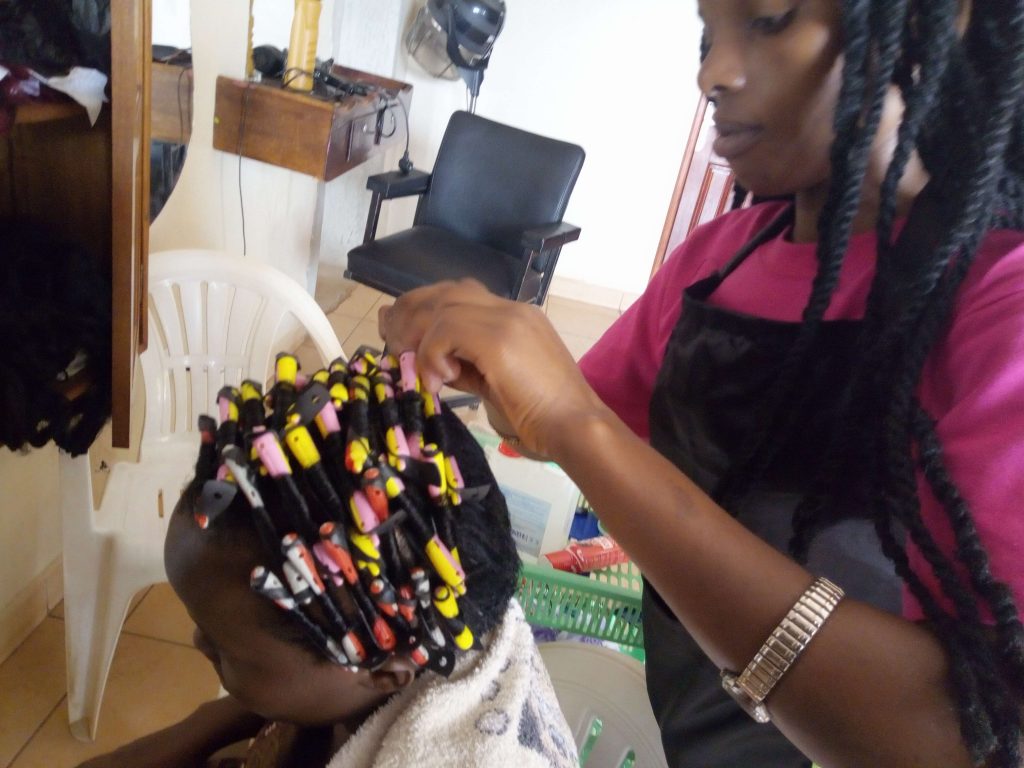 In the Hairdressing class, Fridays are days for creative work. This involves making dreadlocks, styling Afro hair, bridal styling, doing curly perms and so much more.